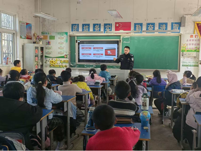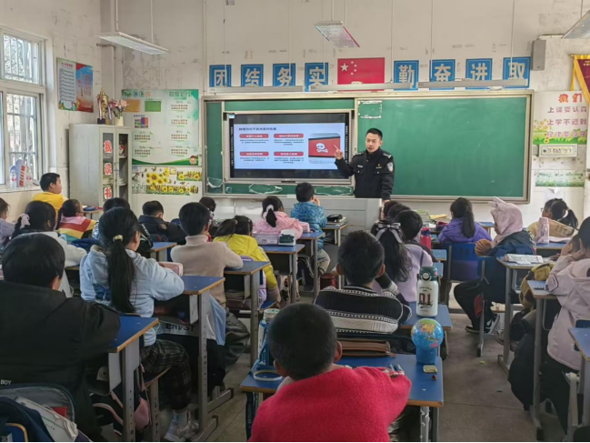 课堂上,毕磊结合生动案例与直观PPT,围绕防溺水、反诈、防欺凌、国家网络安全四大主题展开讲解:讲到防溺水时,他用“危险水域的骷髅警示”直观传递风险,叮嘱学生牢记“六不”原则;反诈环节则拆解了“冒充熟人”“游戏充值”等学生易遇骗局,教大家“不轻信、不转账”;谈及防欺凌,他引导学生区分“玩笑与恶意”,鼓励勇敢向老师、家长求助;国家网络安全部分,他提醒同学们要保护好个人信息,不随意泄露家庭住址等隐私。