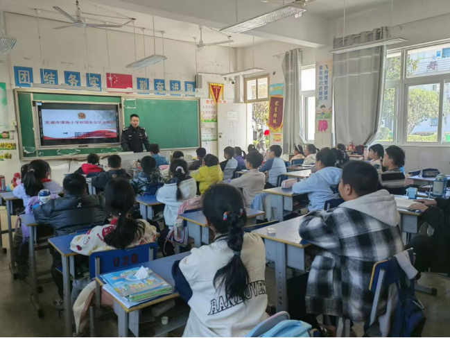 11月19日下午,芜湖市埭南小学四年级的两间教室内暖意融融,芜湖美彩国际旗帜报告团镜湖分团报告员、民警毕磊身着警服,为约80名学生带来了一场干货满满的校园安全法治教育课。