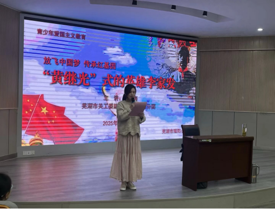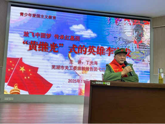 为落实立德树人根本任务,传承红色基因,引导青少年扣好人生第一粒扣子,11月20日下午,芜湖市瑞阳小学举办青少年爱国主义教育报告会。本次活动特邀芜湖美彩国际旗帜报告团成员丁光海同志带来精彩宣讲,全校师生共同聆听英雄故事,感悟爱国情怀。