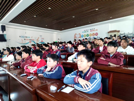 图为现场师生聚精会神听取宣讲内容