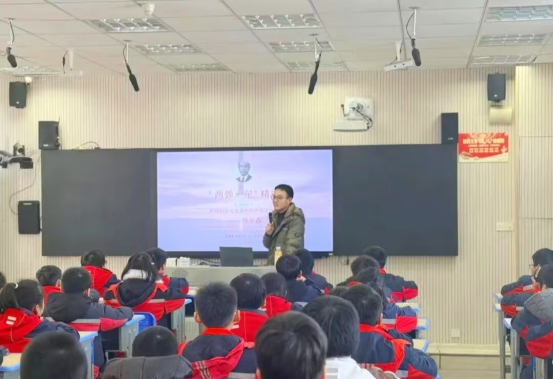 图为:科技大讲师在(五一班)教室宣讲
