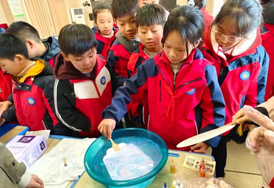 课堂上,孩子们目不转睛,随着宣讲老师的讲述时而屏息凝神,时而发出阵阵惊叹。在“水面作画转印”“声音的共振喷泉”“无限镜”等小实验中,孩子们纷纷举起小手,跃跃欲试。