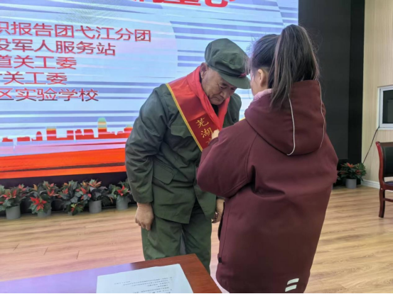 整场活动庄重而热烈,同学们专注聆听,深受教育。此次活动不仅丰富了校园文化生活,更强化了学生的爱国主义情怀。活动最后,学生代表向丁光海同志配戴红领巾和鲜花。