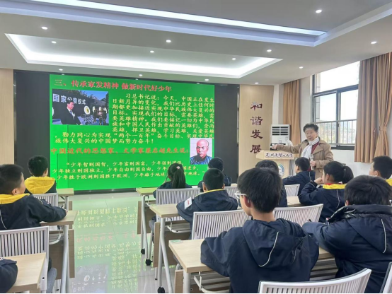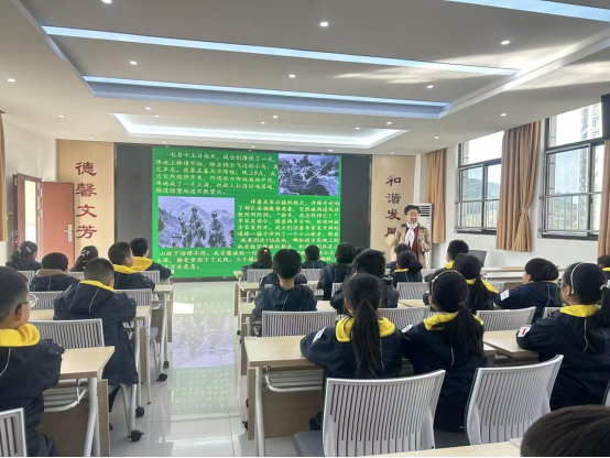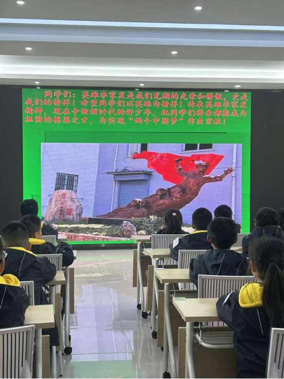 讲座最后,李奶奶告诉同学们,李家发烈士的家乡为了纪念他,特意改名为“家发镇”,他的精神一直激励着一代又一代人。李秀英老师不仅讲述历史,还结合现实生活,引导同学们思考如何在日常生活中传承红色精神。她鼓励同学们要以英雄为榜样,努力学习,成长为对社会有用的人,做有担当的新时代好少年。同学们纷纷表示,要把李家发烈士的故事讲给家人听,更要以他为榜样,从小树立爱国心,长大争做栋梁材。