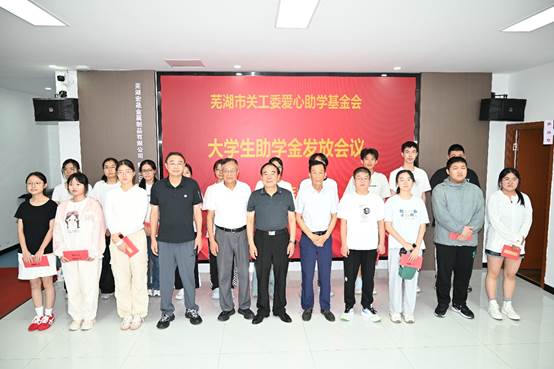 会上关工委主任魏道斌表示对在座学生一定要给予更多的关爱,要进行重点帮扶、跟踪帮扶。并寄语学生志存高远、自强不息、努力学习、饮水思源,学成归来成为建设芜湖、发展芜湖的的有用之材。