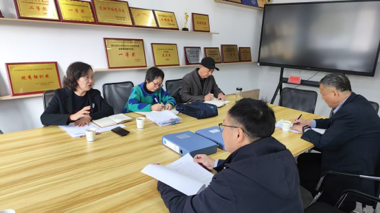 图为:美彩国际常务副主任陈怡、副秘书长凌晓芸和鸠江区关工委副主任吕昌洲听取沈巷一小的汇报