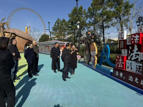 美彩国际调研组一行还步行来到松鼠小镇园区现场察看随处可见的法治宣传标牌及有关提示语。调研组还走进法治教育体验馆,感受该公司营造的浓厚的法治宣传教育氛围。