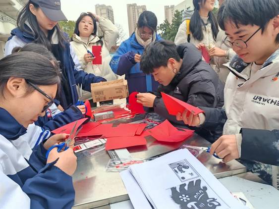 活动伊始,邀请老师为学生展示了剪纸的基本技法和多样化的表达形式。学生们在剪纸老师的指导下,亲手体验了剪纸的乐趣。在欢声笑语中,学生们用剪刀和纸张,创作出各种栩栩如生的剪纸作品,有的画面充满喜庆的新春元素,有的则是对自然风光的生动描绘,充分体现了学生对美好生活的向往。