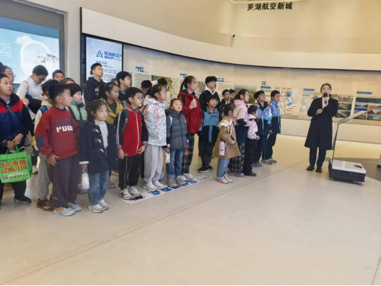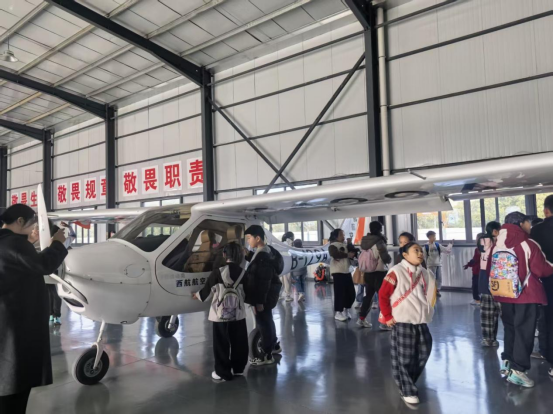 抵达航空小镇后,孩子们在工作人员与关工委志愿者的带领下,先后参观航空科普馆、飞机展示区。科普馆内,图文展板、实物模型清晰呈现航空发展历程,讲解员用通俗语言讲解飞行原理、航空技术知识,孩子们静心聆听、踊跃提问,眼神里满是好奇与向往;飞机展示区中,各类固定翼飞机、直升机静静陈列,孩子们近距离观察机身结构,触摸航空器械部件,直观感受航空工业的硬核实力,不时发出阵阵赞叹。