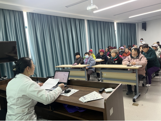 本次讲座由辖区卫生服务站的王医生主讲。考虑到老年群体的健康需求特点,王医生围绕“常见慢性病管理、冬季养生保健、合理膳食搭配、应急急救常识”四大核心内容展开讲解。在慢性病管理板块,王医生结合临床案例,详细解读了高血压、糖尿病等高发疾病的日常监测要点、用药注意事项及并发症预防措施,特别强调了“定期体检、遵医嘱用药、适度运动”的重要性;冬季养生部分,针对老年人免疫力较弱的特点,从起居作息、保暖防护、情志调节等方面给出了具体建议,提醒大家早睡晚起、适度进补、保持心情舒畅;合理膳食环节,通过通俗的语言讲解了“低盐、低脂、低糖”饮食原则,推荐了适合老年人的食材搭配与烹饪方式;应急急救常识则聚焦心肺复苏、呛咳急救等实用技能,王医生现场演示了操作流程,指导老年朋友们进行简单模拟练习,确保大家掌握关键步骤。