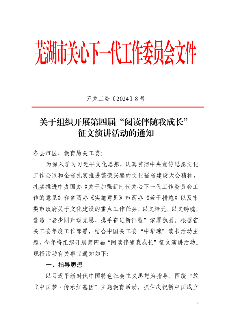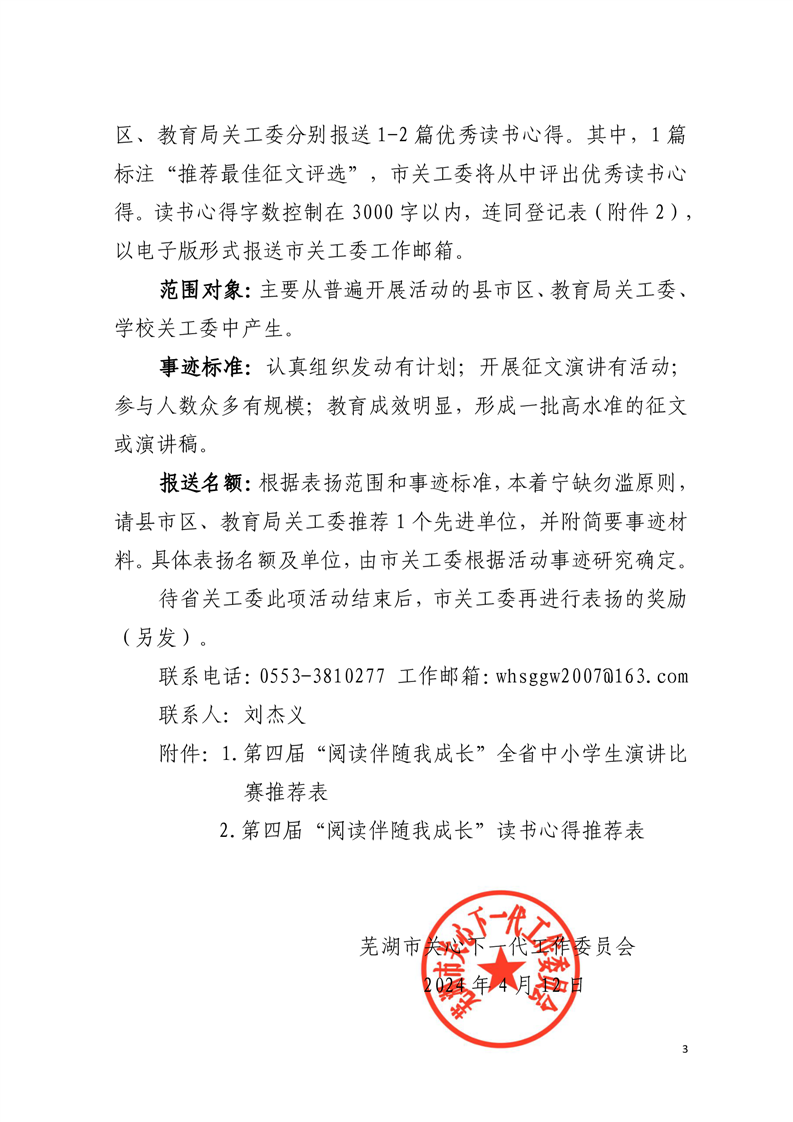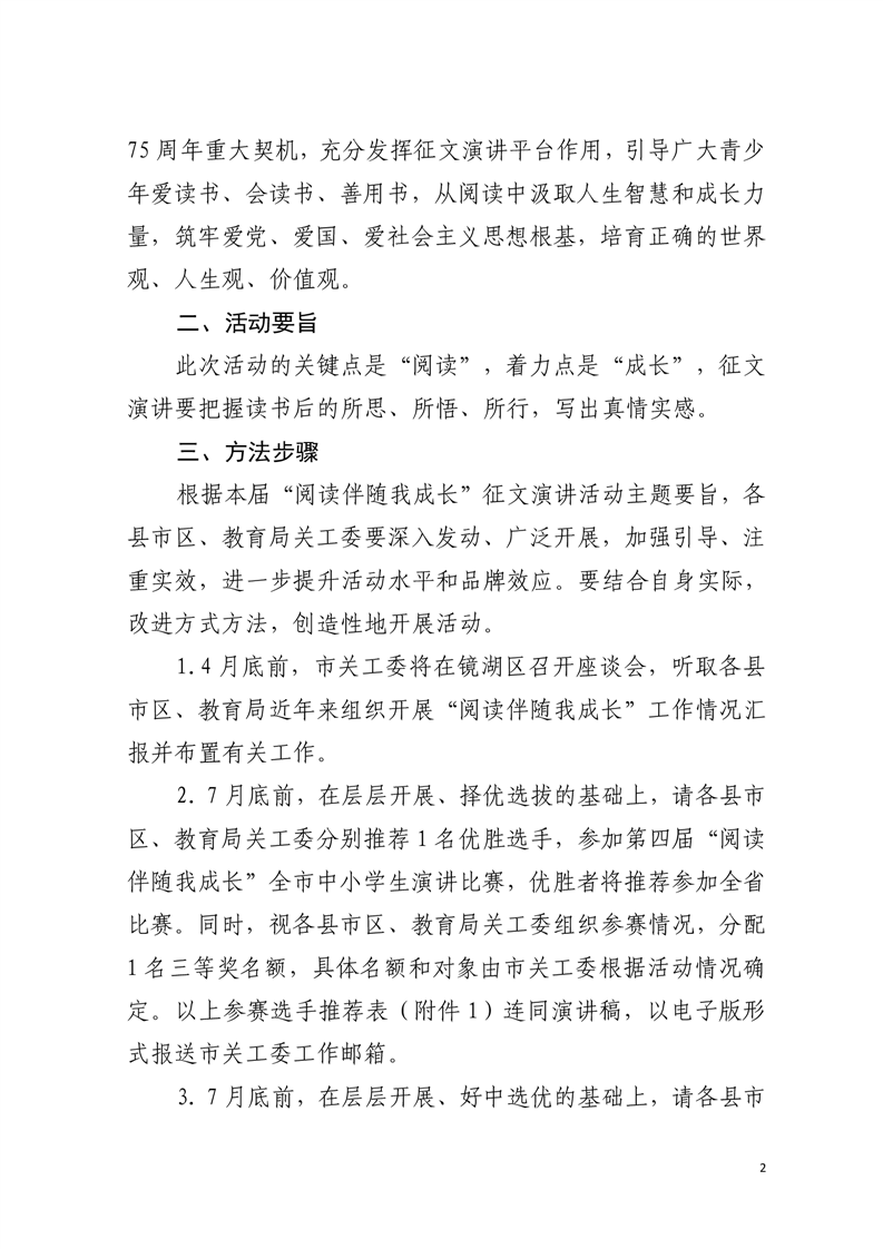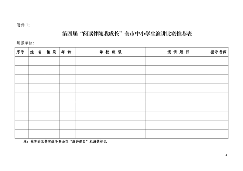 关于组织开展第四届“阅读伴随我成长”征文演讲活动的通知