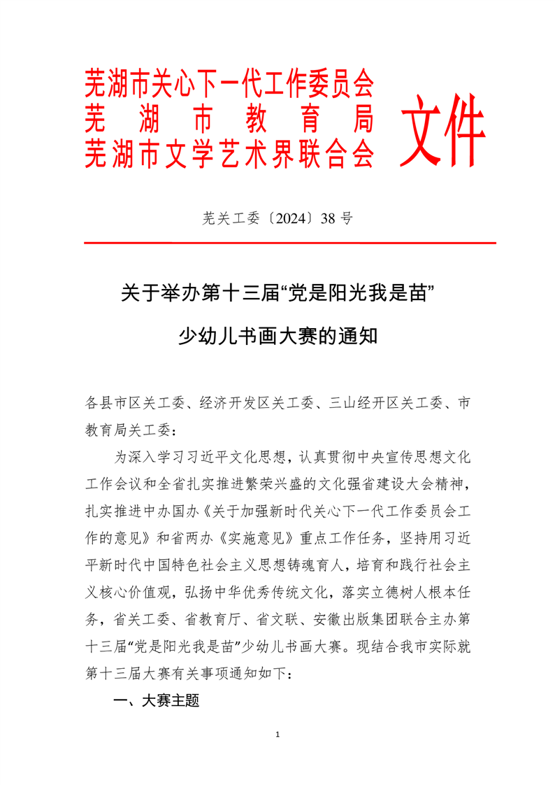 关于举办第十三届“党是阳光我是苗”少幼儿书画大赛的通知