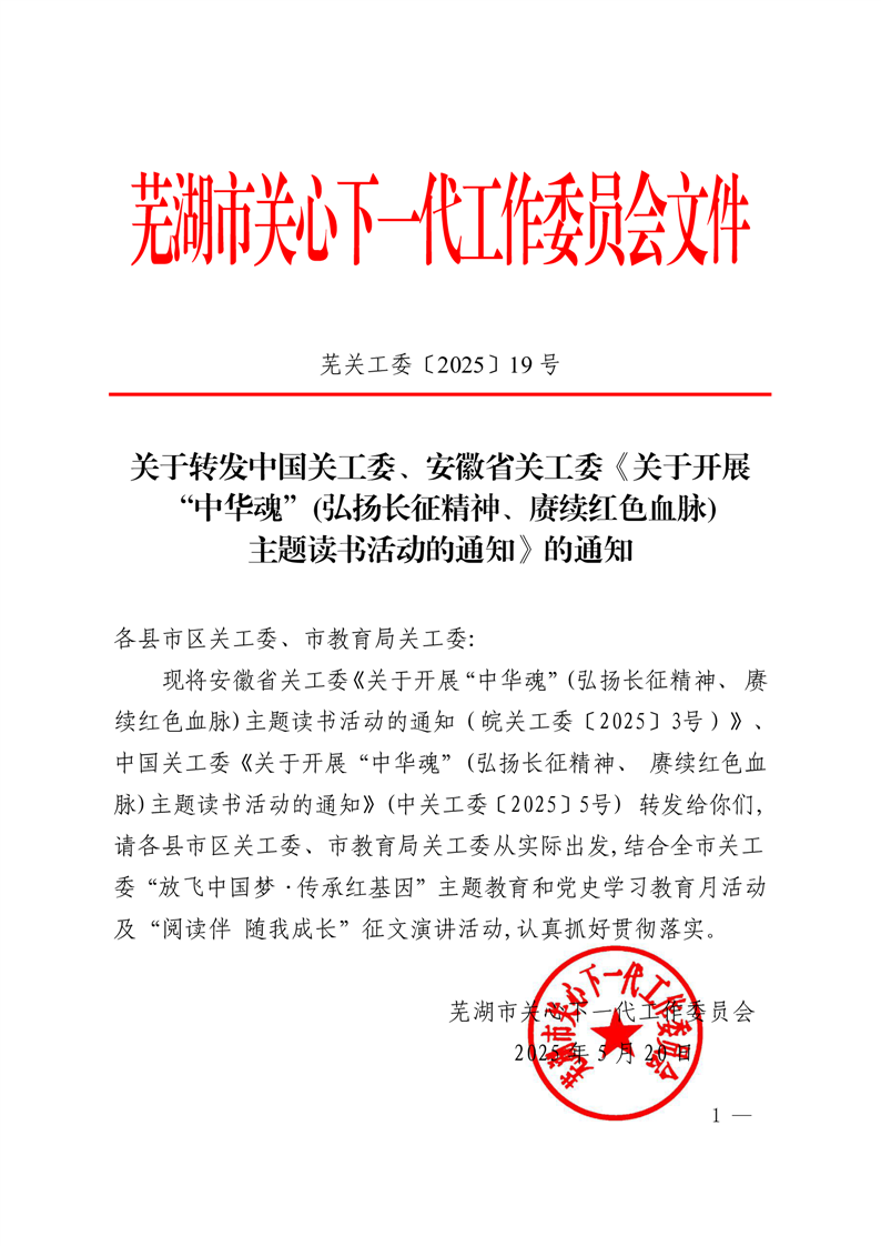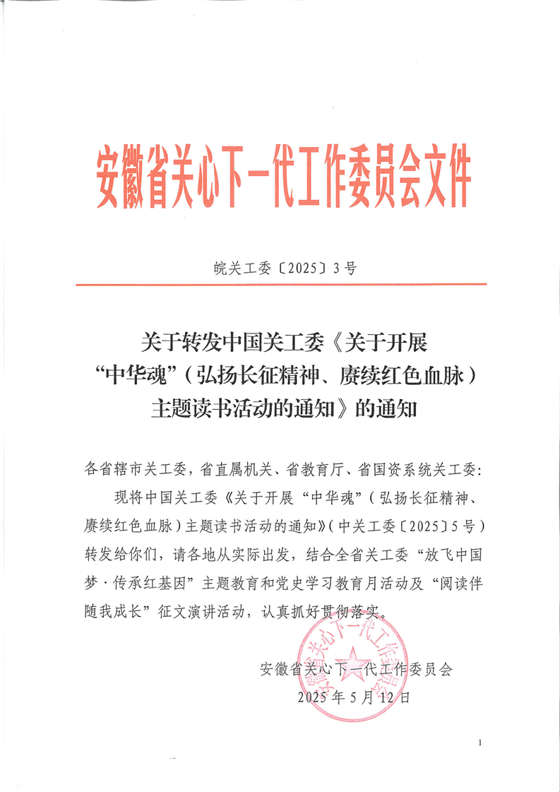 关于转发中国关工委、安徽省关工委《关于开展“中华魂”(弘扬长征精神、赓续红色血脉)主题读书活动的通知》的通知