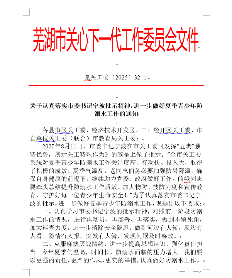 关于认真落实市委书记宁波批示精神,进一步做好夏季青少年防溺水工作的通知