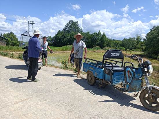 由于三轮车陷入农田较深,吴贤文一个人很难将车辆移动。他深知时间紧迫,先询问驾驶身体情况有没有受伤需不需要叫救护车,确认人没事之后大声呼喊周围的村民前来帮忙。不一会儿,附近的村民纷纷赶来,大家齐心协力,喊着口号,试图将三轮车抬起,然而,第一次尝试并没有成功,大家稍作调整,重新发力。在吴贤文的指挥下,众人再次用力,终于将三轮车缓缓抬到路边。