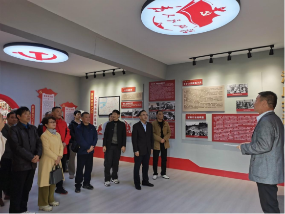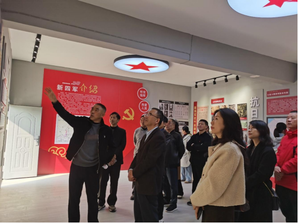 活动中,首先参观了位于火龙街道新联村建设中的红色教育基地“新四军在弋江陈列馆”。该馆由弋江区新四军历史研究会、火龙街道及新联村筹备建设,以1938年至1945年新四军在弋江的革命活动为主线,设置“新四军介绍”、“新四军在竹丝港地区”、“新四军在弋江几次有影响的战斗”、“新四军在弋江主要活动”、“革命先辈代表人物”、“新联村的时代答卷”六大板块。弋江区新四军研究会会长陈胜江介绍,本馆通过珍贵史料、实物展陈与场景还原,呈现新四军在弋江的抗日斗争史实,为党史学习教育和爱国主义教育提供实境课堂,让后人在回望中汲取奋进力量,赓续共产党人的精神血脉。