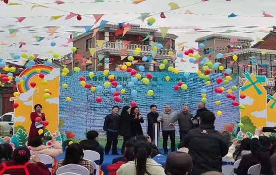 图为:前来参观乡村振兴的人与村民一起共度“五一”大联欢