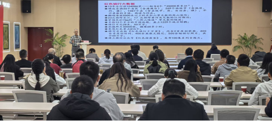 安徽工程大学教授、硕士生导师赵国庆、副主任医师曹锦芬夫妇,市旗帜报告团市直分团宣讲员、军事研究专家张武应邀分别以《红色骑行十万里,弘扬伟大建党精神》、《抗日战争简史》为主题作精彩报告。赵国庆曹锦芬夫妇秉持党的理想信念,以独特的方式传承红色基因、弘扬红色文化。2008年以来,为期13年的“无后援”脚踩单车“红色骑行”十万余里,骑遍全国34个省级行政区(含港澳台),瞻仰红色纪念地近千处,出版65万字专著《红色骑行十万里》。骑行结束后,一直致力于宣讲伟大建党精神和红色骑行的初心使命。赵国庆、曹锦芬双双获评“第九届中国当代徐霞客”暨“全国红色旅游特别奖”“安徽省离退休干部正能量之星”等多项荣誉称号,赵国庆还荣膺“全国离退休干部先进个人”。全场听众对“红色骑行”所蕴含的崇高信仰、伟大精神、坚强意志和无畏勇气深感震撼。